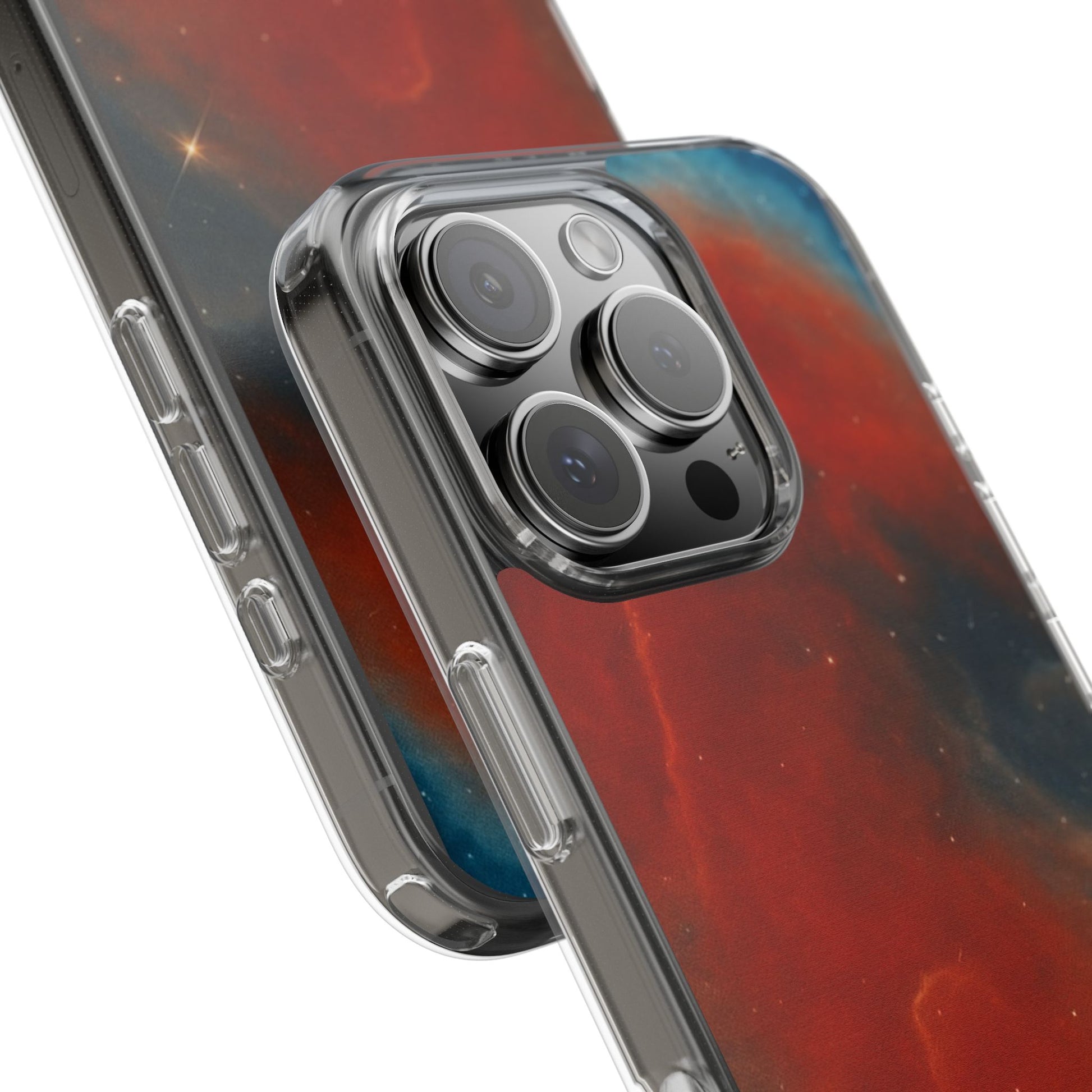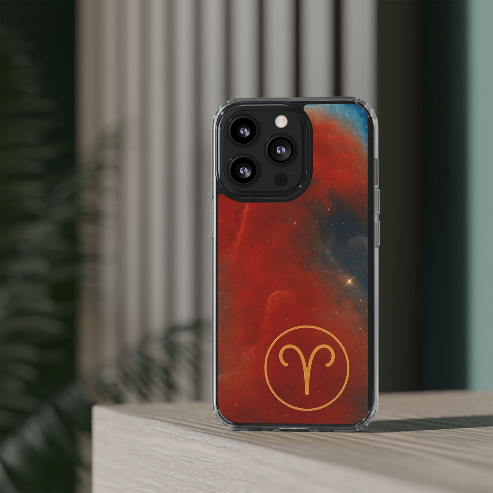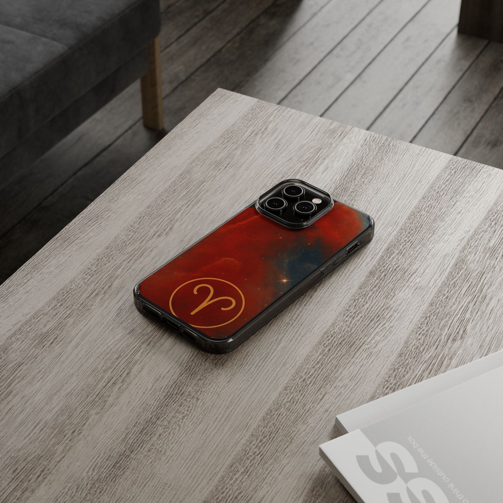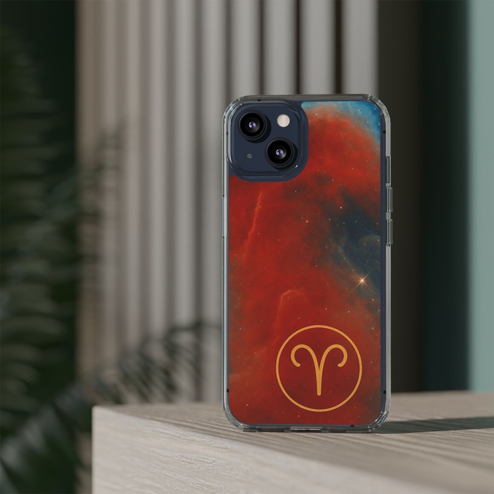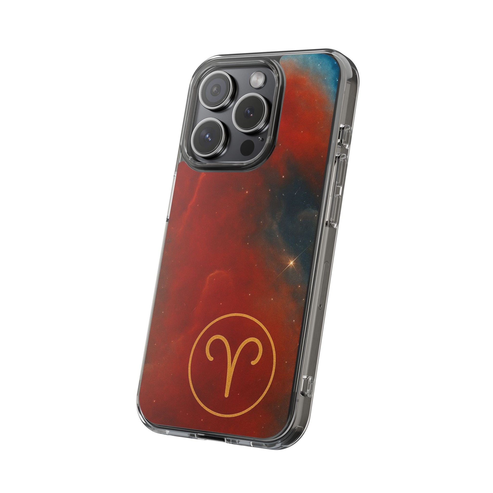 Aries Zodiac Clear Impact-Resistant Phone Case — Red Nebula Constellation Design