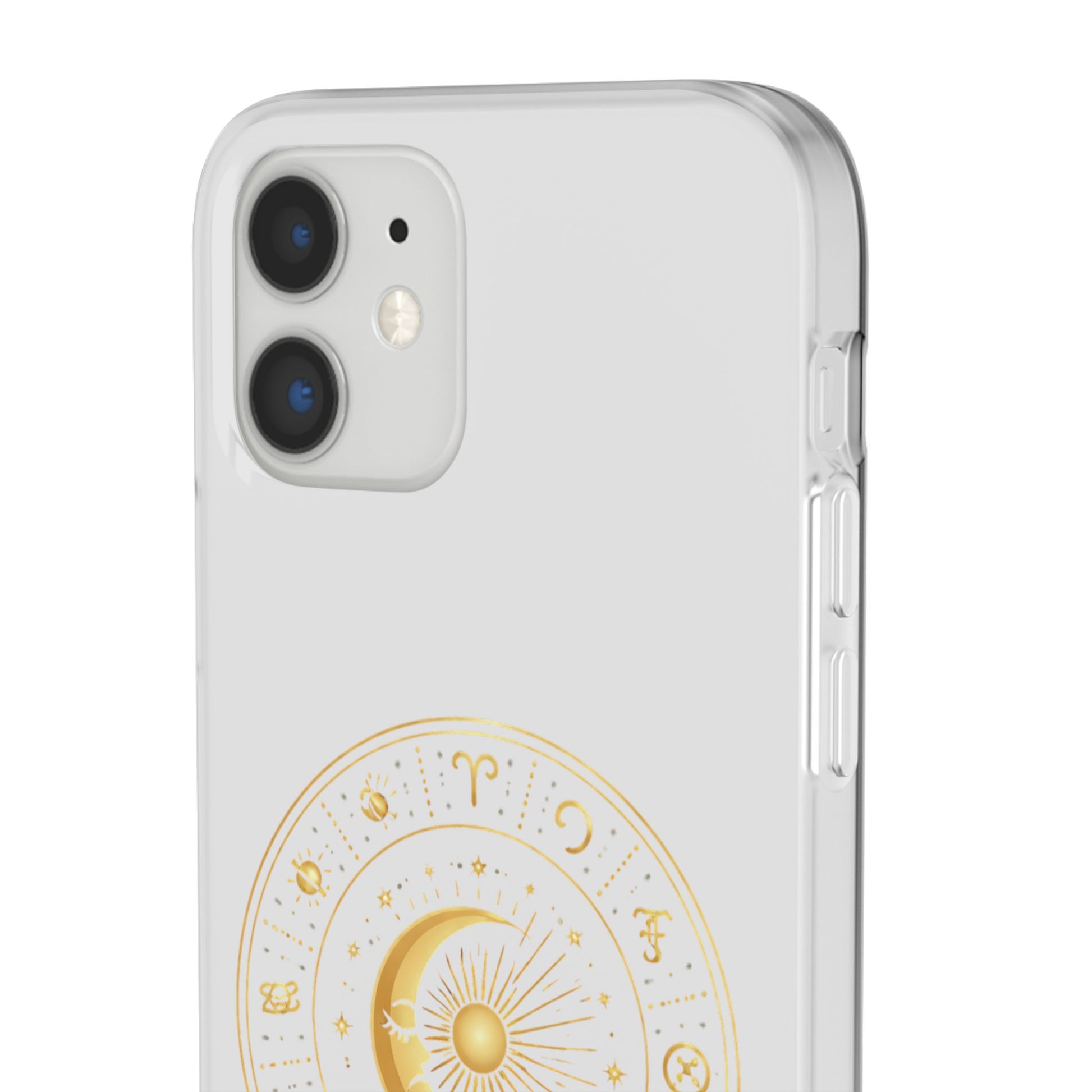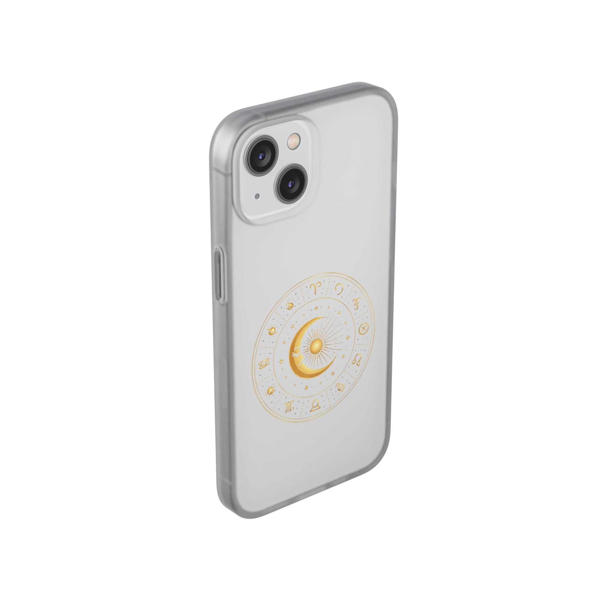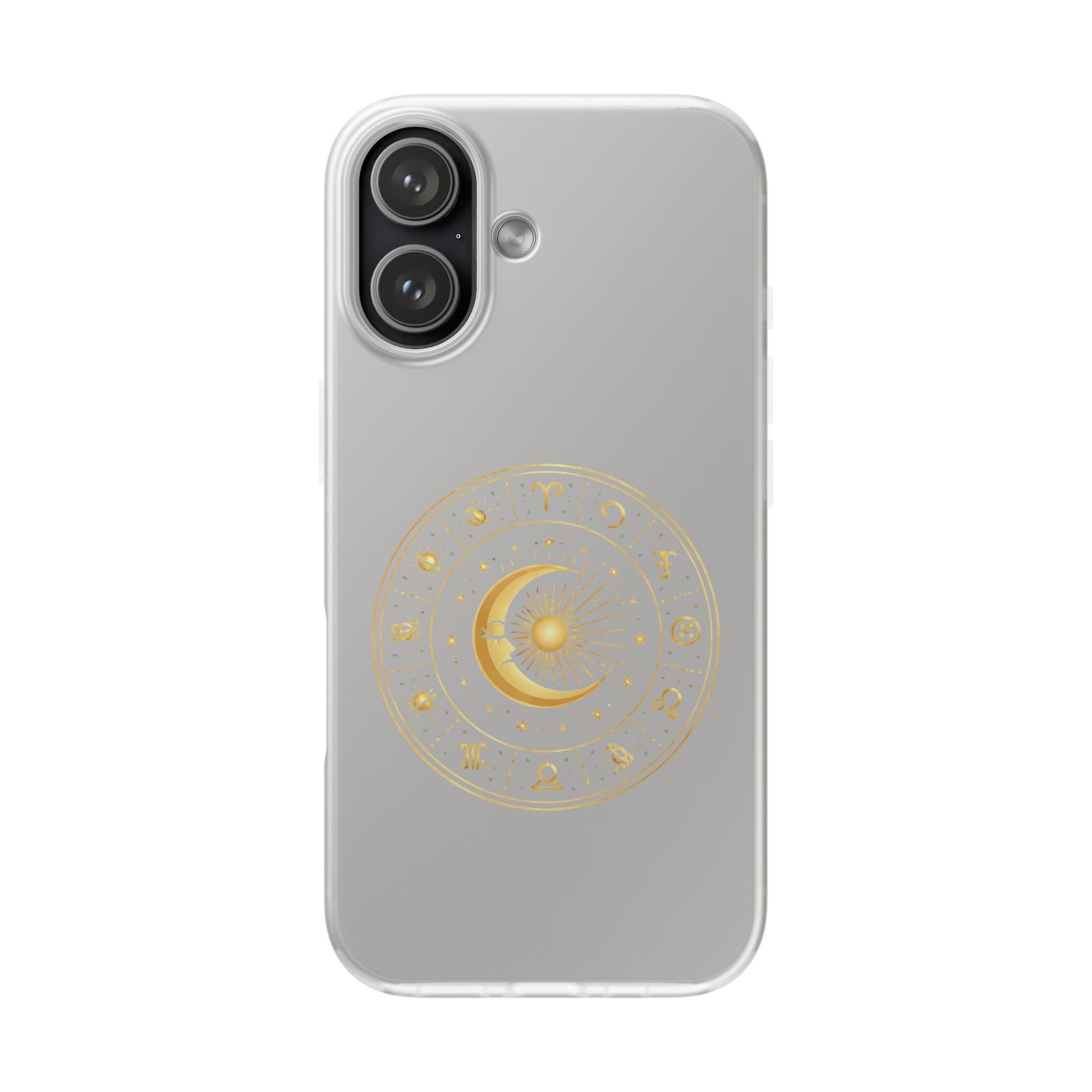 Clear Phone Case with Gold Celestial Moon & Zodiac Wheel – Astrology iPhone Cover