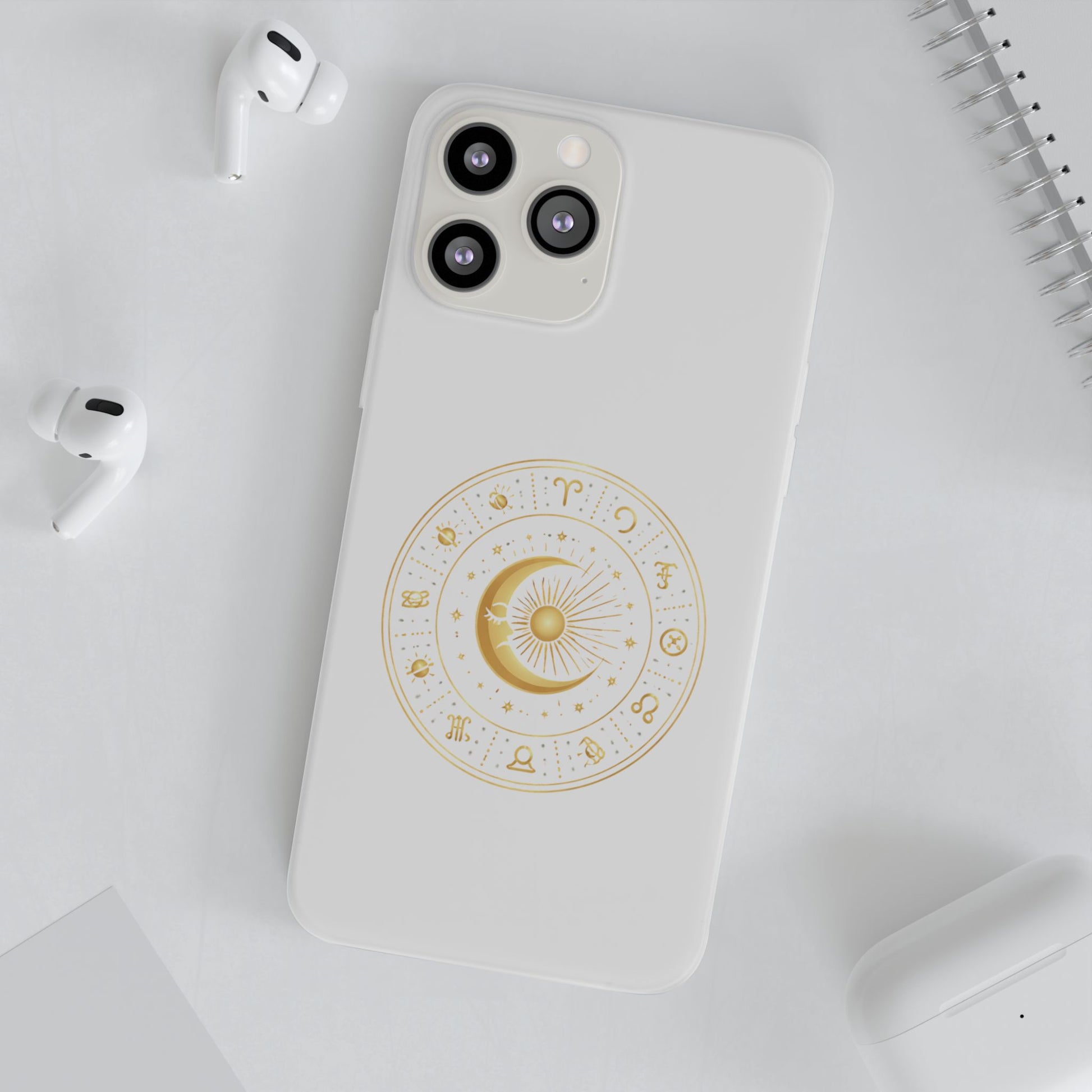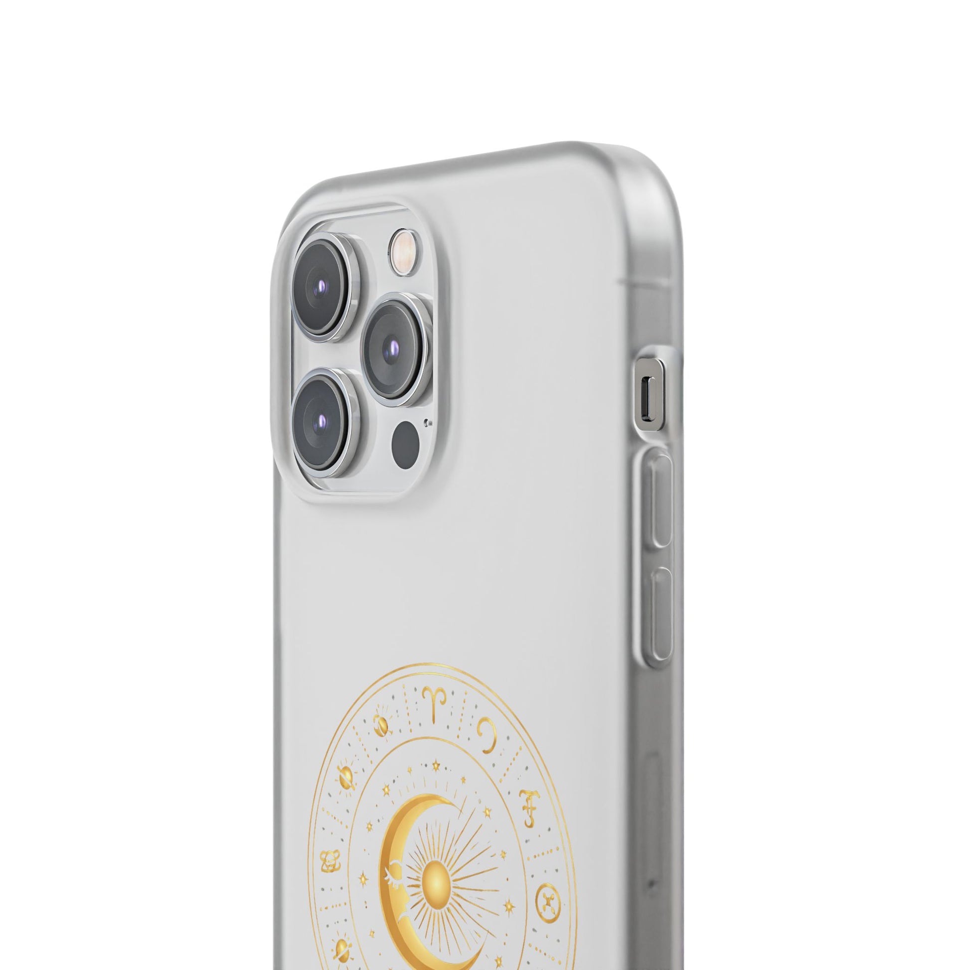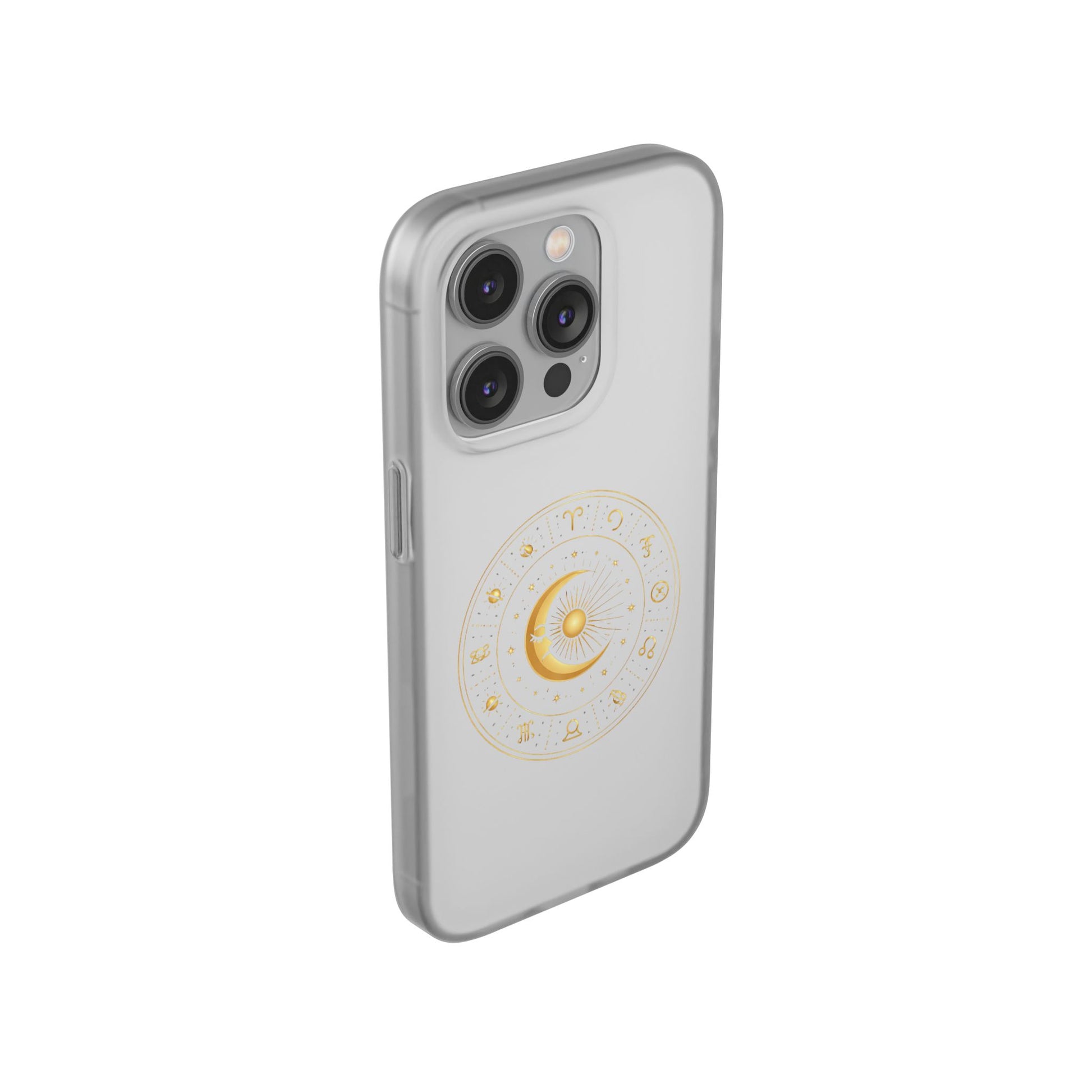 A slim, semi-transparent phone case that blends subtle elegance with everyday protection. The frosted matte finish lets the device’s color show through while a delicate gold celestial design—featuring a crescent moon and zodiac motifs—adds a quiet, mystical touch. Lightweight and flexible TPU hugs the phone’s contours, providing shock absorption and precise cutouts for easy access to ports and cameras. The low-profile silhouette supports wireless charging and slips easily into pockets or bags. This case feels calm and refined, the kind of detail that turns a practical accessory into a small, personal talisman.