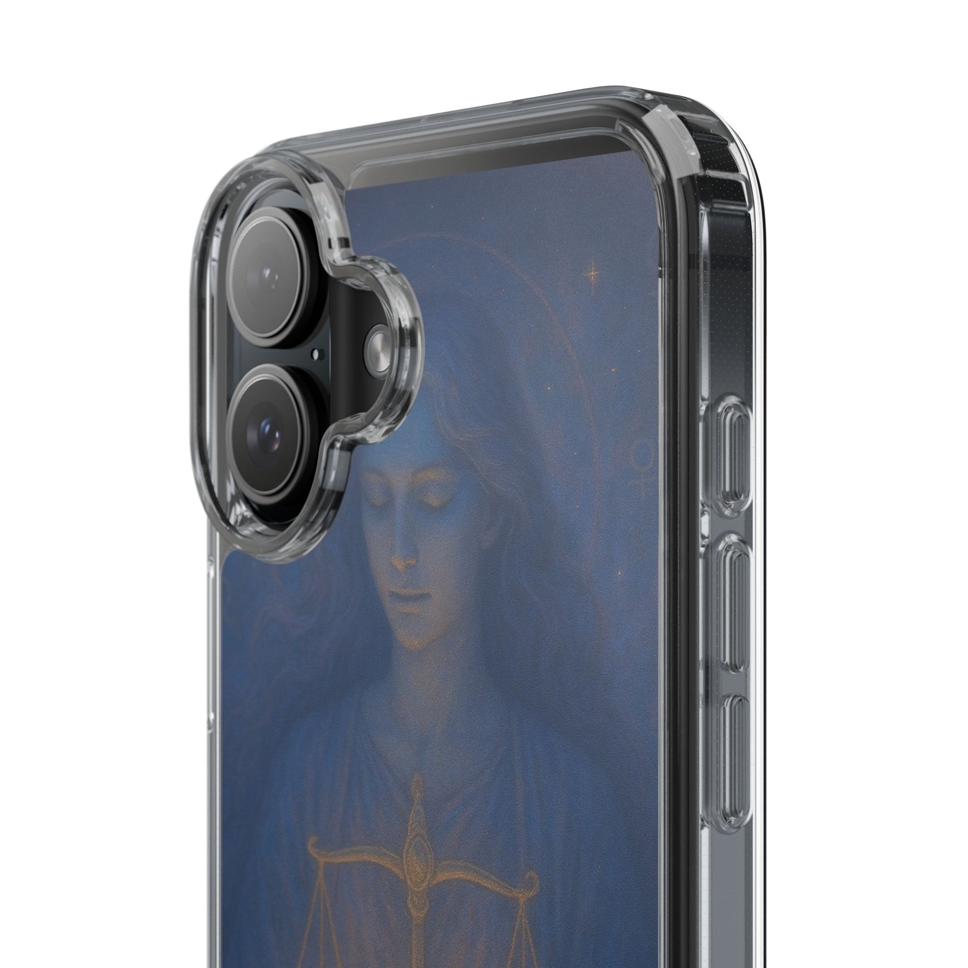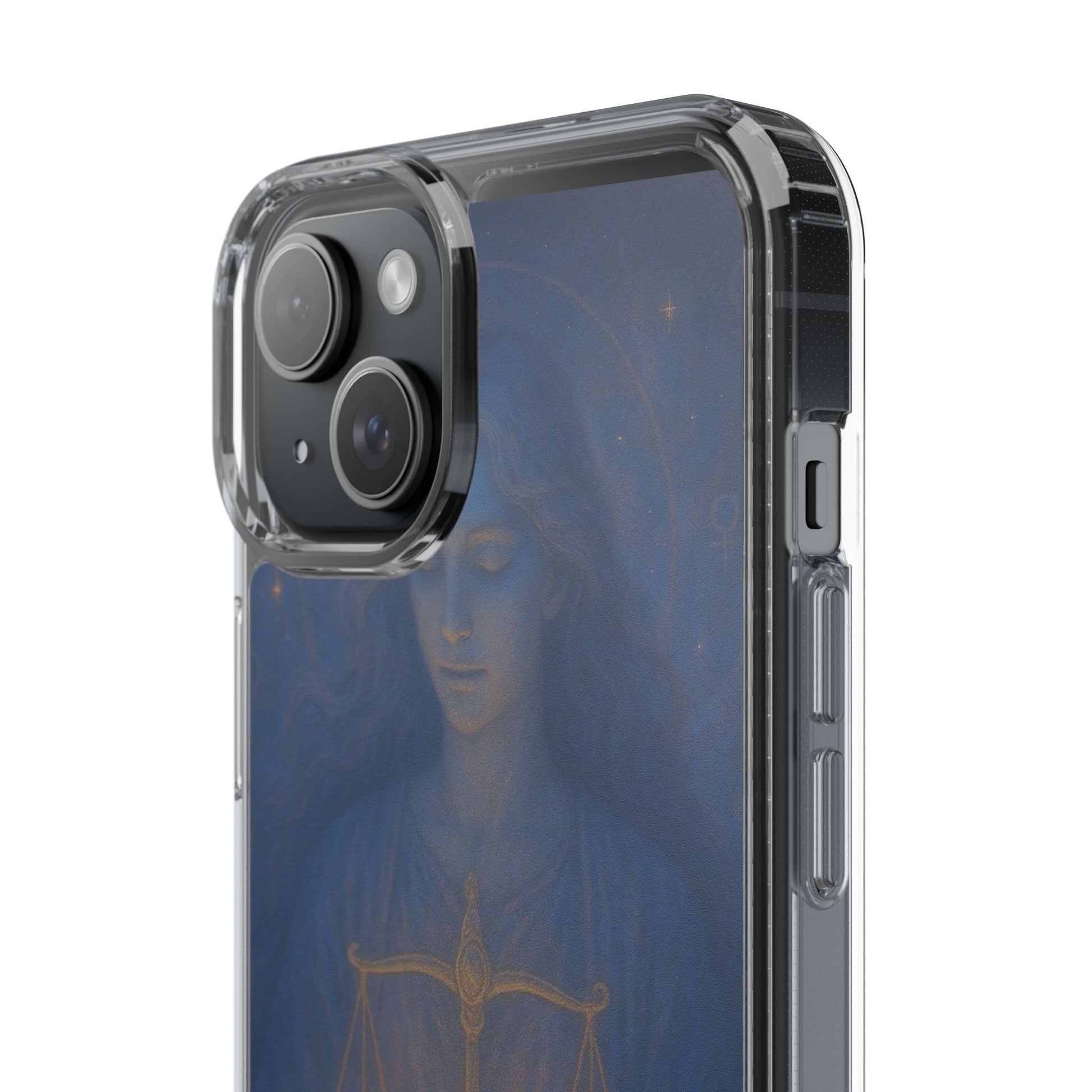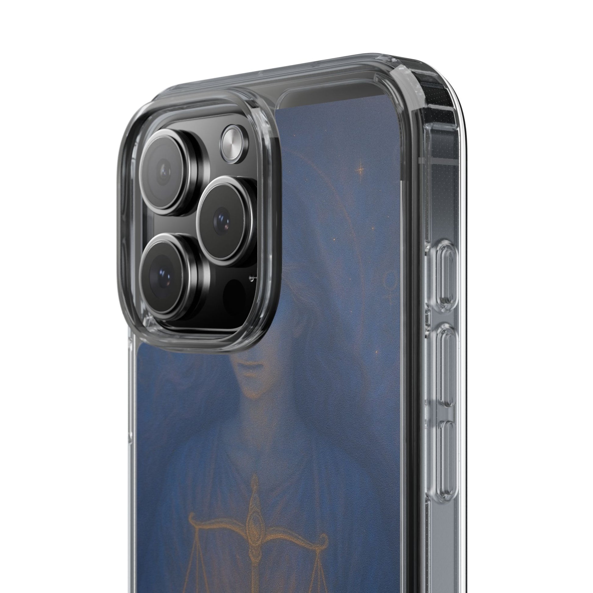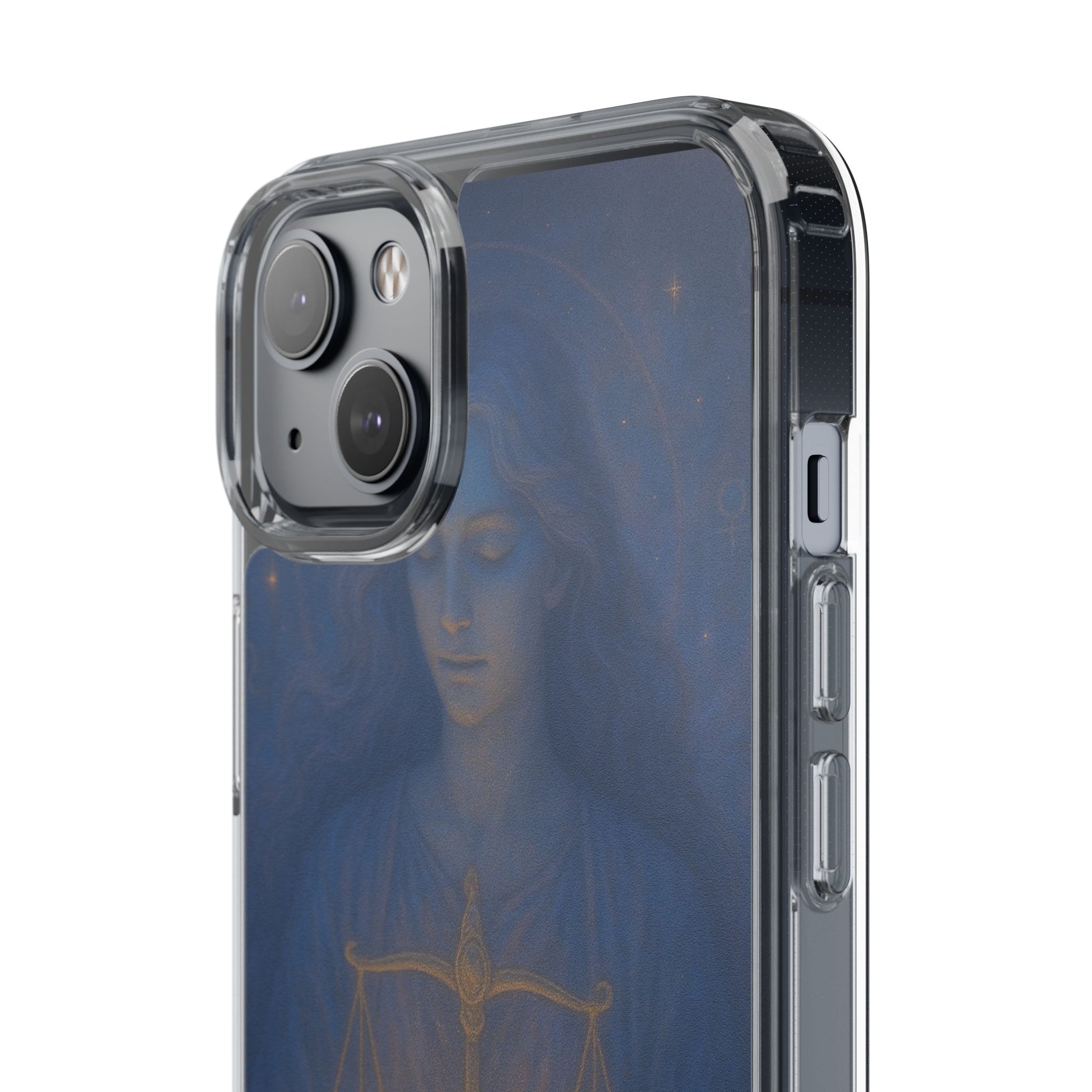Carry your Libra energy with quiet elegance. This slim clear case pairs a lightweight, shock-absorbing frame with a soft, painterly illustration of the scales — warm gold tones glowing against deep, twilight blues. It feels smooth in hand, slides easily into pockets, and keeps the artwork visible while protecting edges and camera cutouts. The imagery invites calm balance: a gentle reminder to choose harmony in a busy day, whether you’re heading to a coffee shop, meeting friends, or settling in for a thoughtful evening at home. Colors stay vivid thanks to crisp printing, and the case supports wireless charging so your routine stays uninterrupted.